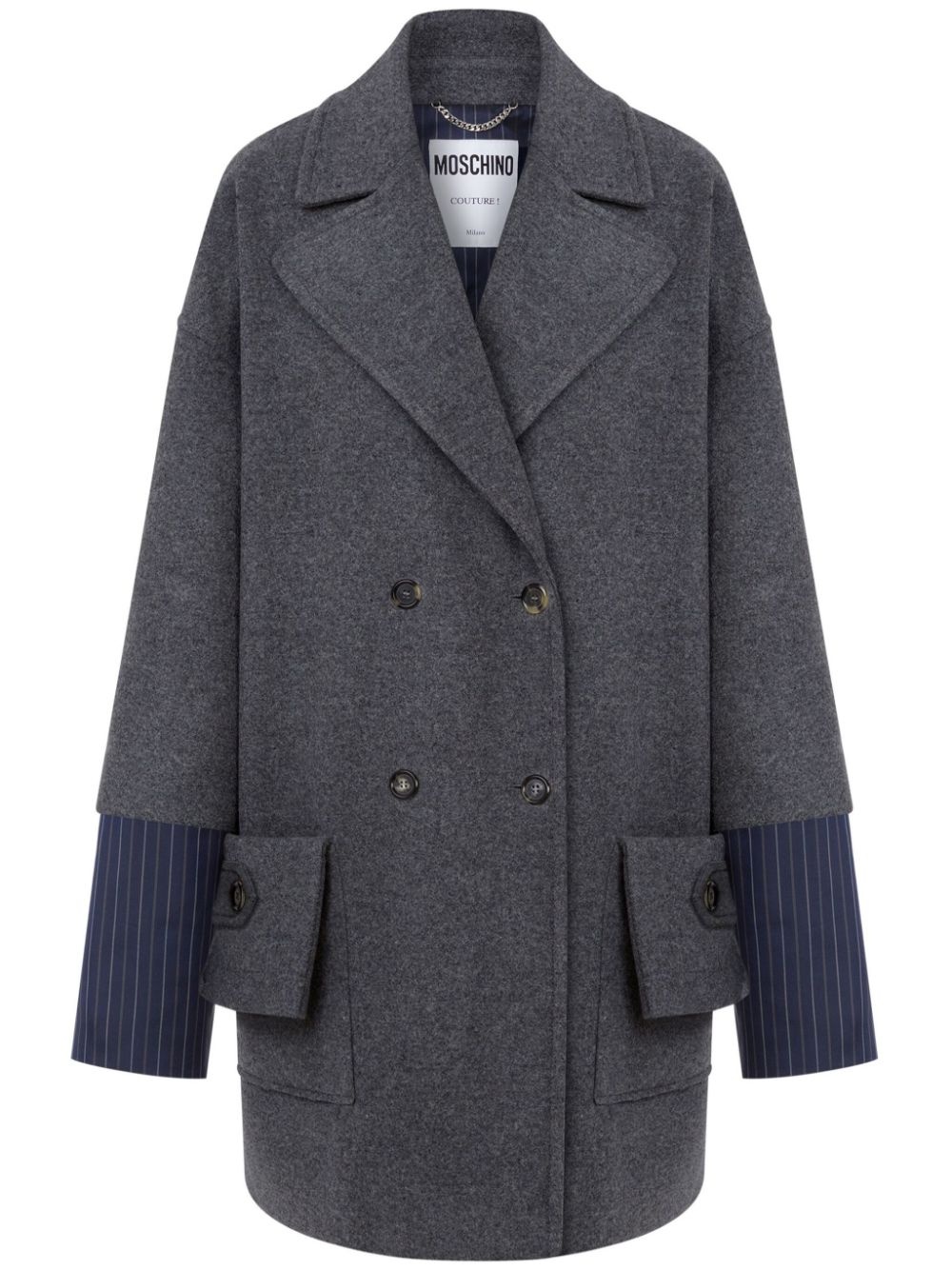 double-breasted coat Highlights - Dark grey - Double-breasted button fastening - Two front flap pockets - Wide notch lapels Made in Italy Composition Wool 80%, Polyamide 20%