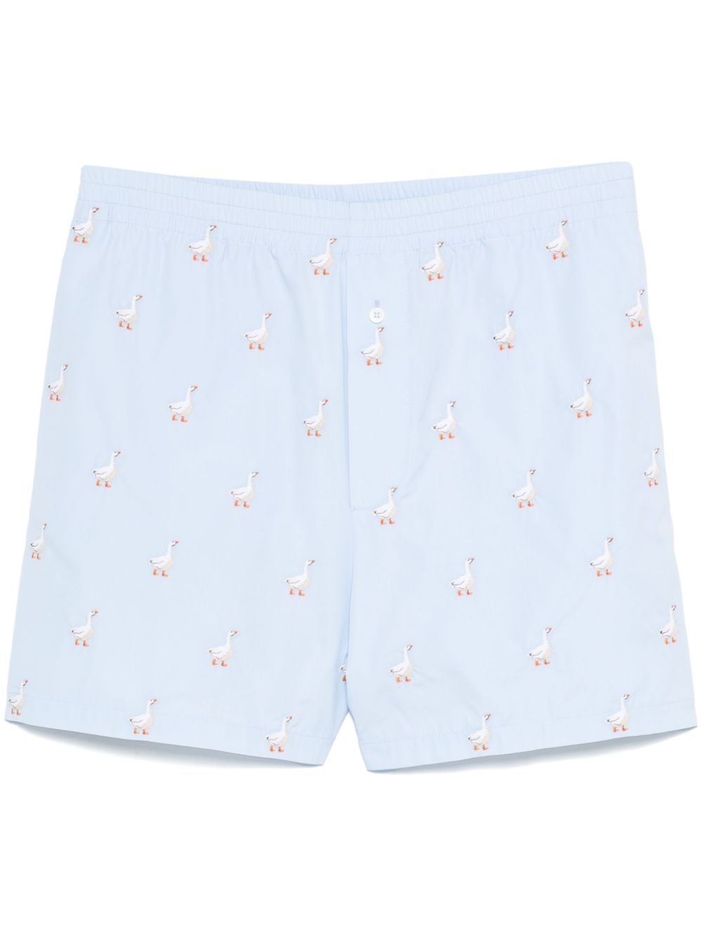 duck-embroidered shorts Highlights - Baby blue - Front button fastening - Elasticated waistband - Two side inset pockets - Rear welt pocket Made in Italy Composition Cotton 100%