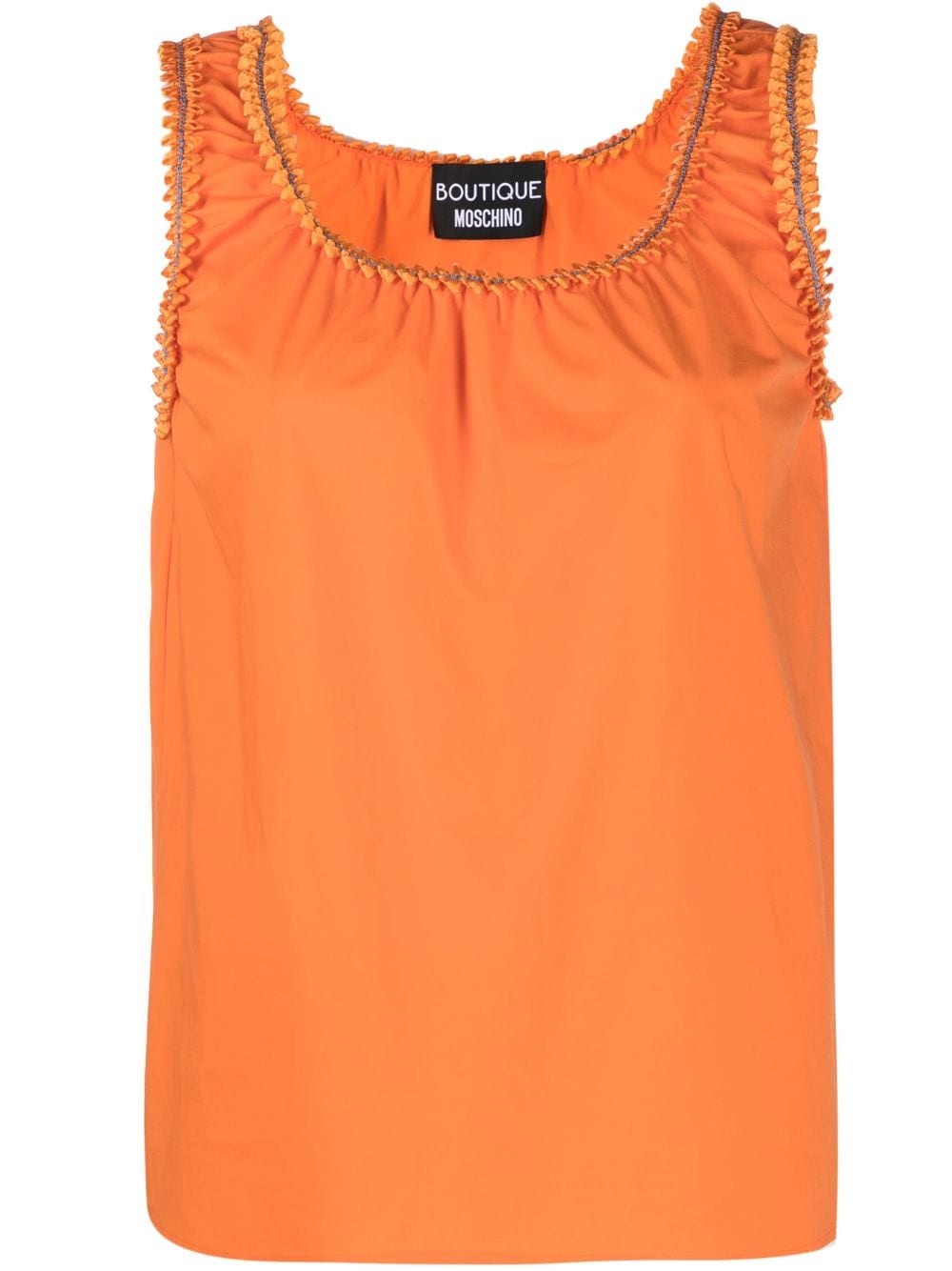 embellished-trim tank top Highlights - Carrot orange - Stretch-cotton - Poplin texture - Ruffled trim - U-neck - Wide shoulder straps - Sleeveless - Straight hem Imported Composition Cotton 95%, Spandex/Elastane 5% SIZE & FIT Model measurements Height 5 ft 11 in(1.8 m) Bust/Chest 31.49 in(80 cm) Hips 36.61 in(93 cm) Waist 24.4 in(62 cm) FittingInformation Designed to be unstructured, offering a loose fit throughout Made from a lightweight stretch fabric, this piece offers elasticity and flexibility when worn This piece fits true to size – take your usual size Washing instructions Machine Wash