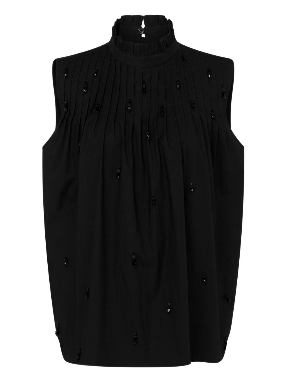 embroidered poplin top Highlights - Black - Gathered detailing - Round high neckline - Subtle bead embellishments Made in Italy Composition Cotton 94%, Elastane 6% Washing instructions Dry Clean Only