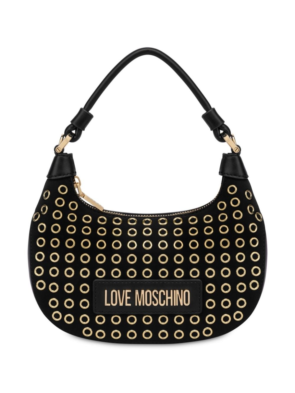eyelet-embellished mini bag Highlights - Black - Faux leather - Metal eyelet detailing - Logo plaque - Adjustable detachable shoulder strap - Single top handle - Top zip fastening - Main compartment - Full lining - Gold-tone hardware Imported Composition Outer: Polyurethane 60%, Thermoplastic Polyurethane (TPU) 40%