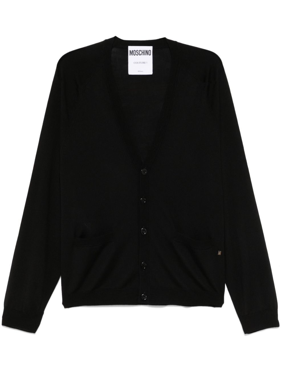 fine-knit cardigan Highlights - Black - Front button fastening - Two front patch pockets - Ribbed cuffs and hem - Long raglan sleeves Imported Composition Virgin Wool 70%, Silk 30%
