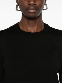fine-knit sweater Highlights - Black - Ribbed cuffs and hem - Logo plaque - Long sleeves Made in Italy Composition Virgin Wool 70%, Silk 30% SIZE & FIT Model measurements Height 5 ft 10 in(1.77 m) Bust/Chest 32.28 in(82 cm) Hips 35.03 in(89 cm) Waist 25.19 in(64 cm) FittingInformation Designed for a slim fit that sits just away from the body offering a close yet comfortable fit The ribbed hem offers a close, comfortable fit Made with a lightweight knit, this piece offers some stretch