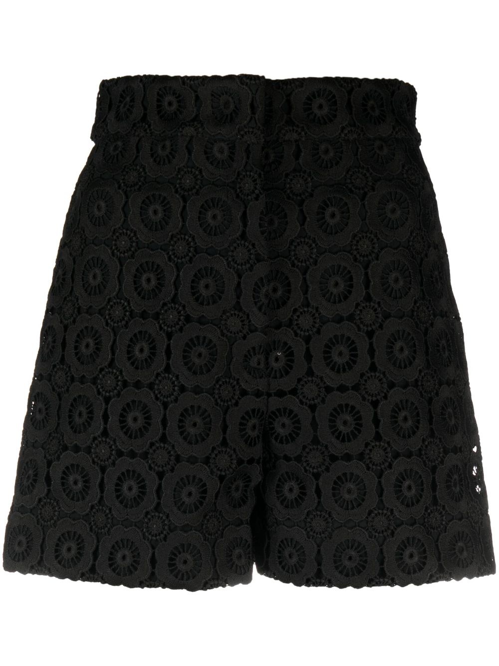 floral-applique high-waist mini shorts Highlights - Black - Floral applique - Concealed fly and button fastening - Two side inset pockets - High waist - Thigh-length - Straight hem Made in Italy Composition Outer: Polyester 100%, Polyamide 100% Lining: Acetate 83%, Silk 17% SIZE & FIT Model measurements Height 5 ft 10 in(1.77 m) Bust/Chest 35.03 in(89 cm) Hips 35.03 in(89 cm) Waist 23.62 in(60 cm) FittingInformation Designed for a slim fit that sits just away from the body offering a close yet comfortable fit Made from a midweight non-stretch fabric This piece fits true to size – take your usual size Washing instructions Dry Clean Only