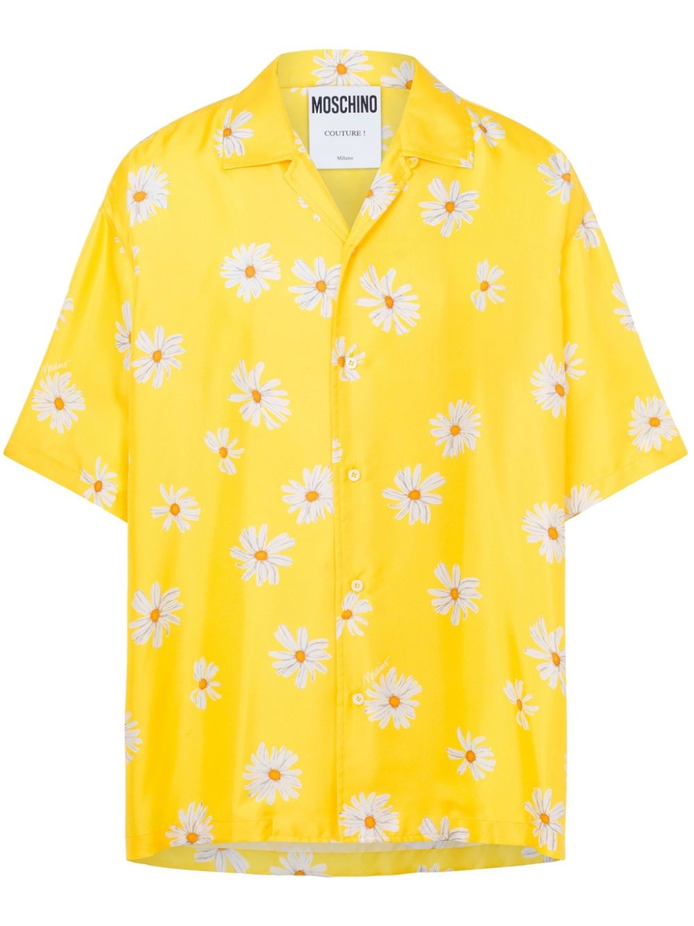 floral-print shirt Highlights - Yellow - Silk - All-over floral print - Front button fastening - Camp collar - Drop shoulder - Short sleeves - Straight hem Imported Composition Silk 100% SIZE & FIT FittingInformation Designed to be unstructured, offering a loose fit throughout Made from a lightweight non-stretch fabric