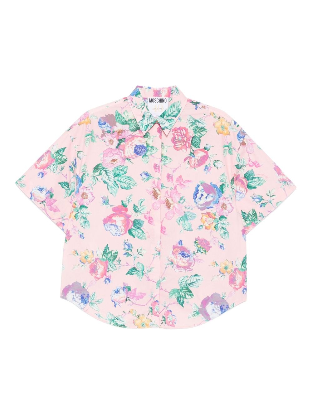 floral-print short-sleeve shirt Highlights - Light pink - Floral print - Front button fastening - Short sleeves - Curved hem Made in Italy Composition Cotton 100% Washing instructions Machine Wash