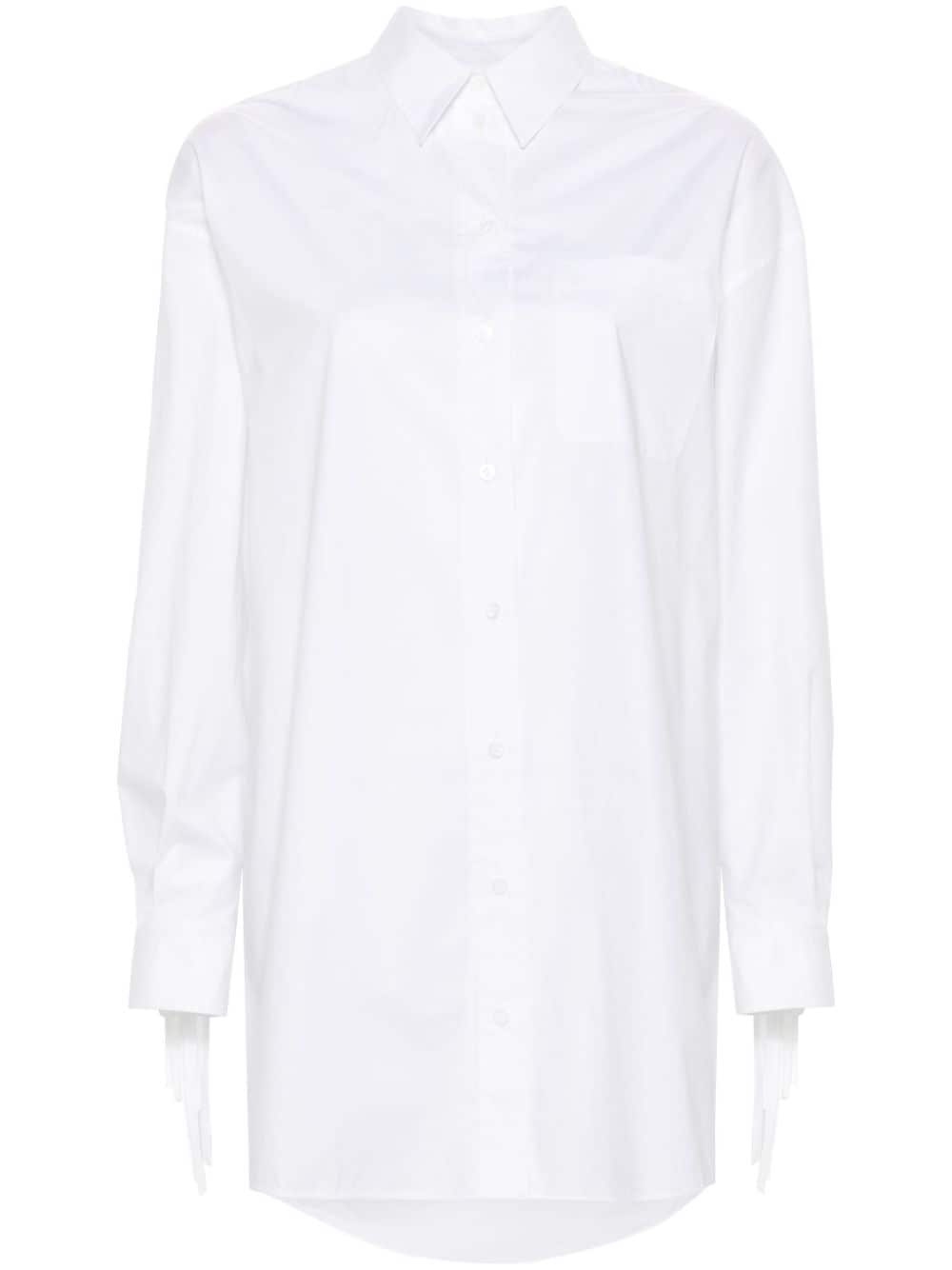fringed shirt Highlights - White - Cotton blend - Poplin texture - Fringe detailing - Front button fastening - Spread collar - Long sleeves - Buttoned cuffs - Chest patch pocket - Curved hem Made in Italy Composition Cotton 94%, Spandex/Elastane 6% SIZE & FIT Model measurements Height 5 ft 9 in(1.75 m) Bust/Chest 34.64 in(88 cm) Hips 36.61 in(93 cm) Waist 26.37 in(67 cm) FittingInformation Designed to be unstructured, offering a loose fit throughout Made from a midweight stretch fabric, this piece offers elasticity and flexibility when worn