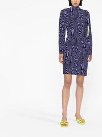 graphic-pattern knitted mini skirt A groovy graphic pattern defines this Moschino skirt, elevated by the vibrant shade of electric blue. It lends the top the bold aesthetic that is associated with the Italian brand. Made in Italy Composition Viscose 88%, Spandex/Elastane 12% SIZE & FIT Model measurements Height 5 ft 10 in(1.78 m) Bust/Chest 29.92 in(76 cm) Hips 34.64 in(88 cm) Waist 23.62 in(60 cm) FittingInformation This piece fits true to size. We recommend you get your regular size Cut for a slim fit Made with a mid-weight stretch fabric Washing instructions Dry Clean Only
