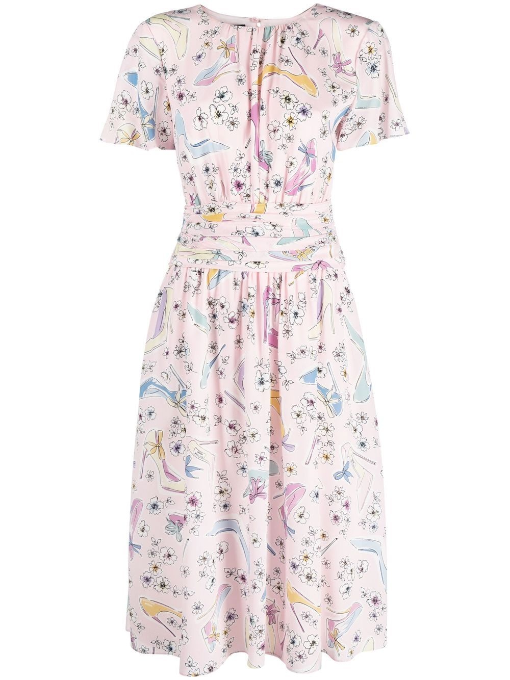 graphic-print dress Boutique Moschino's playful aesthetic is perfectly illustrated by this silk dress from the label's SS23 collection. Adorned with an all-over graphic print, featuring flowers and shoes, this style reflects the brand’s joyful spirit. Imported Composition Outer: Silk 100% Lining: Polyester 100% SIZE & FIT Model measurements Height 5 ft 10 in(1.78 m) Bust/Chest 29.92 in(76 cm) Hips 34.64 in(88 cm) Waist 23.62 in(60 cm) FittingInformation This piece fits true to size. We recommend you get your regular size Designed for a loose fit with a close fit at the waist Made with a mid-weight non-stretch fabric Washing instructions Dry Clean Only