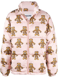 graphic-print padded coat pink/brown padded design signature Teddy Bear motif high neck long sleeves front zip fastening straight hem Made in Italy Composition Outer: Viscose 76%, Wool 24% Lining: Polyamide 58%, Polyester 42% SIZE & FIT Model measurements Height 6 ft 0 in(1.84 m) Bust/Chest 35.82 in(91 cm) Hips 37 in(94 cm) Waist 28.34 in(72 cm) FittingInformation This piece fits true to size. We recommend you get your regular size Cut for a loose fit Made with a mid-weight non-stretch fabric Washing instructions Dry Clean Only
