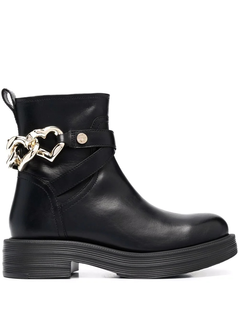 heart-charm ankle boots black calf leather/leather gold-tone hardware heart charm side zip fastening pull-tab at the heel round toe ankle-length branded insole low block heel rubber sole Imported Composition Leather 100%