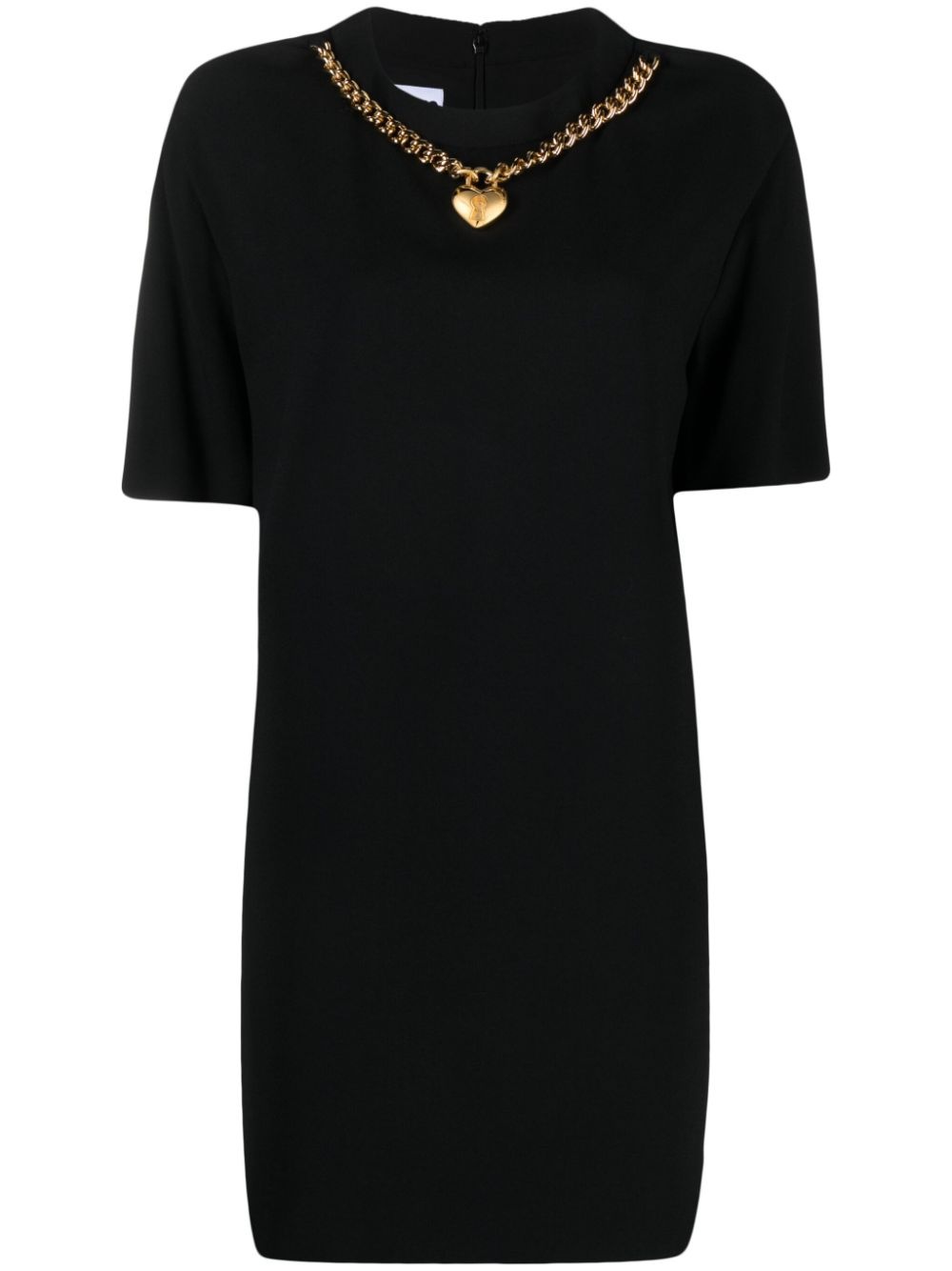 heart-charm crepe minidress Highlights - Jet black - Crepe texture - Chain-link heart charm - Round neck - Concealed rear zip fastening - Drop shoulder - Short sleeves - Straight hem - Above-knee length - Full lining Made in Italy Composition Outer: Acetate 70%, Viscose 30% Lining: Acetate 83%, Silk 17% SIZE & FIT Model measurements Height 5 ft 11 in(1.8 m) Bust/Chest 30.7 in(78 cm) Hips 35.03 in(89 cm) Waist 24.4 in(62 cm) FittingInformation Designed for a relaxed fit, this piece allows for comfort and movement when worn Made from a midweight non-stretch fabric, this piece offers minimal elasticity when worn This piece fits true to size – take your usual size Washing instructions Dry Clean Only