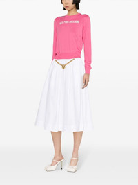 heart-charm ruched midi skirt Highlights - White - Stretch-cotton - Poplin texture - Pleat detailing - Heart charm - Chain-link detailing - Two front slit pockets - High-waisted - Concealed rear zip fastening - Flared - Knee-length - Unlined Made in Italy Composition Cotton 97%, Elastane 3% SIZE & FIT Model measurements Height 5 ft 10 in(1.78 m) Bust/Chest 29.92 in(76 cm) Hips 34.64 in(88 cm) Waist 23.62 in(60 cm) FittingInformation This midi-length skirt is intended to be worn high on the waist Made from a midweight non-stretch fabric This piece fits true to size – take your usual size Washing instructions Hand Wash