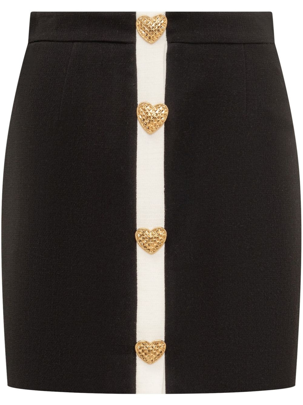 heart-motif mini skirt Highlights - Black - Heart motif - Rear zip fastening - Straight hem Made in Italy Composition Outer: Viscose 63%, Wool 35%, Elastane 2% Lining: Acetate 83%, Silk 17%