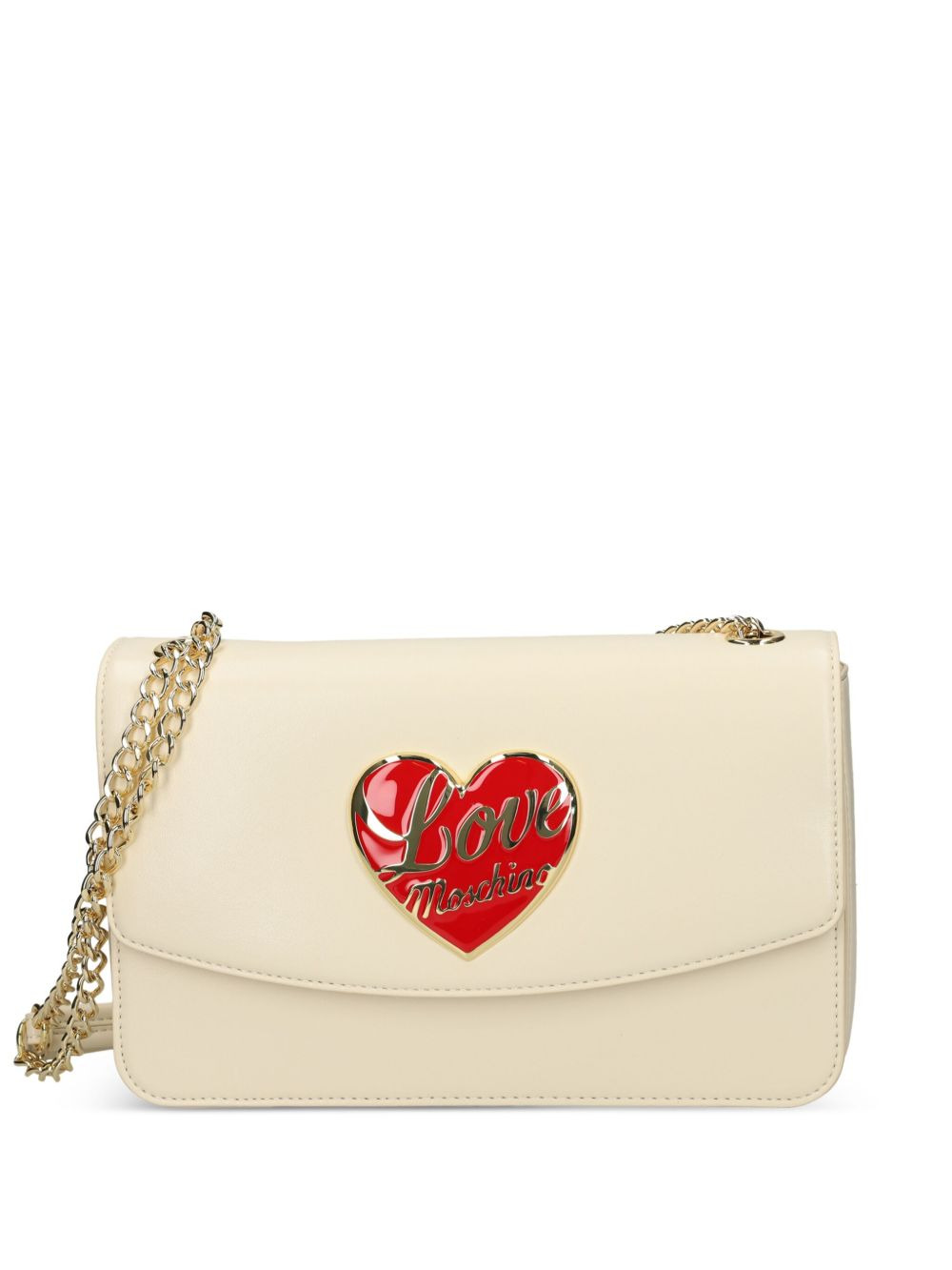 heart-plaque chain shoulder bag Highlights - Ivory - Heart-shaped plaque - Gold-tone chain strap - Flap closure Imported Composition Polyurethane 100%, Leather 100%