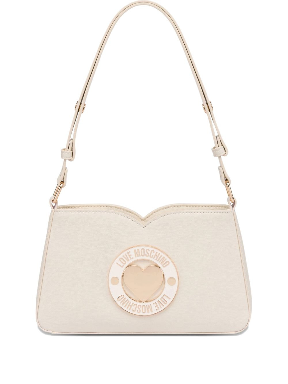 heart-plaque shoulder bag Highlights - Off-white - Heart-shaped plaque - Top handle - Curved topline - Zip fastening - Polyurethane material Imported Composition Outer: Polyurethane 100% Lining: Fabric 100%