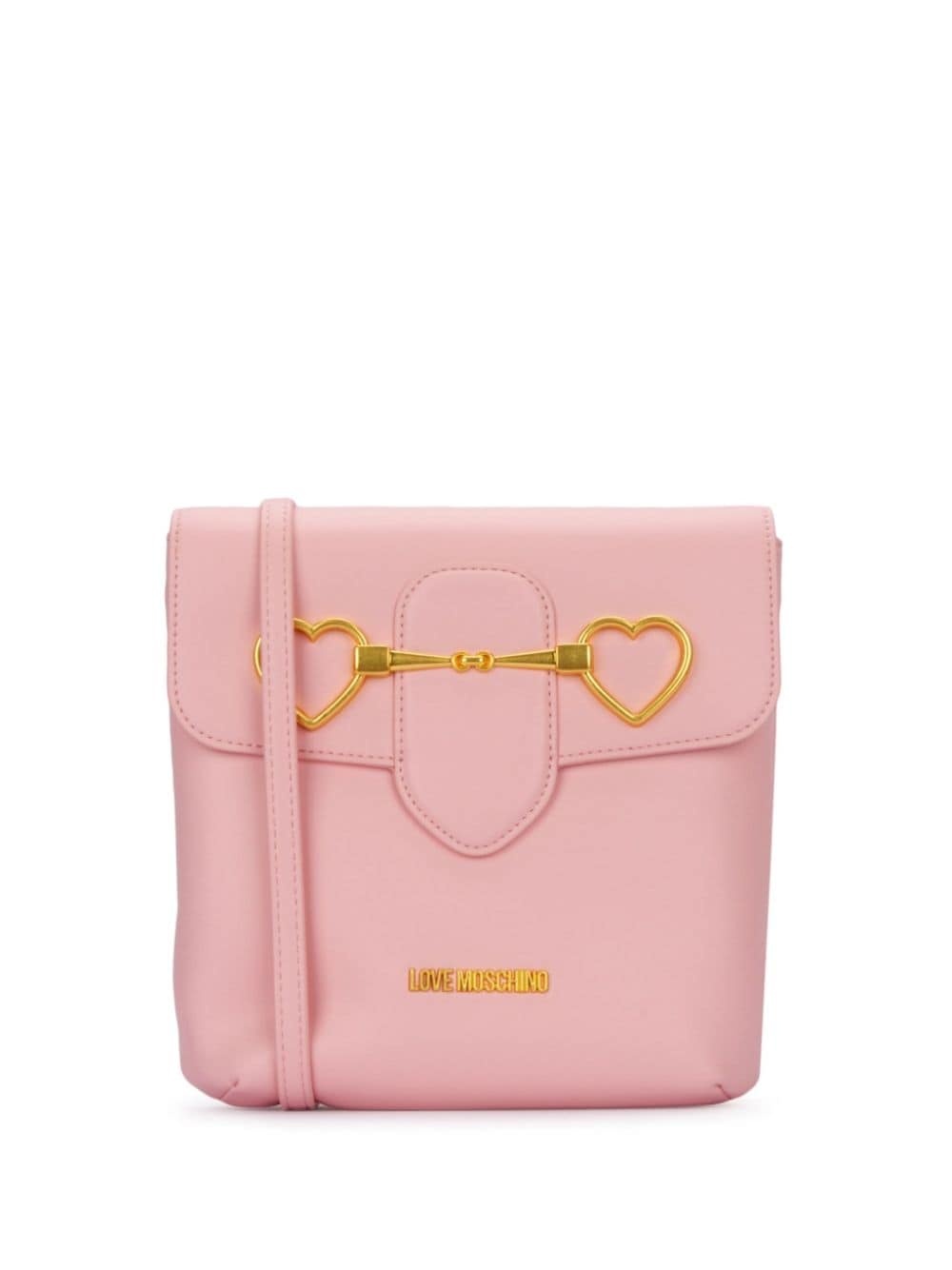 heart-plaque shoulder bag Highlights - Rose pink - Faux leather - Horsebit detail - Heart plaque - Gold-tone logo lettering - Gold-tone logo plaque - Detachable shoulder strap - Foldover top with magnetic fastening - Main compartment - Gold-tone hardware Imported Composition Outer: Polyurethane 100%, Polyester 100% SIZE & FIT Measurement DEPTH 2.75 in(7 cm) HEIGHT 6.69 in(17 cm) STRAP 11.02 in(28 cm) WIDTH 9.84 in(25 cm)