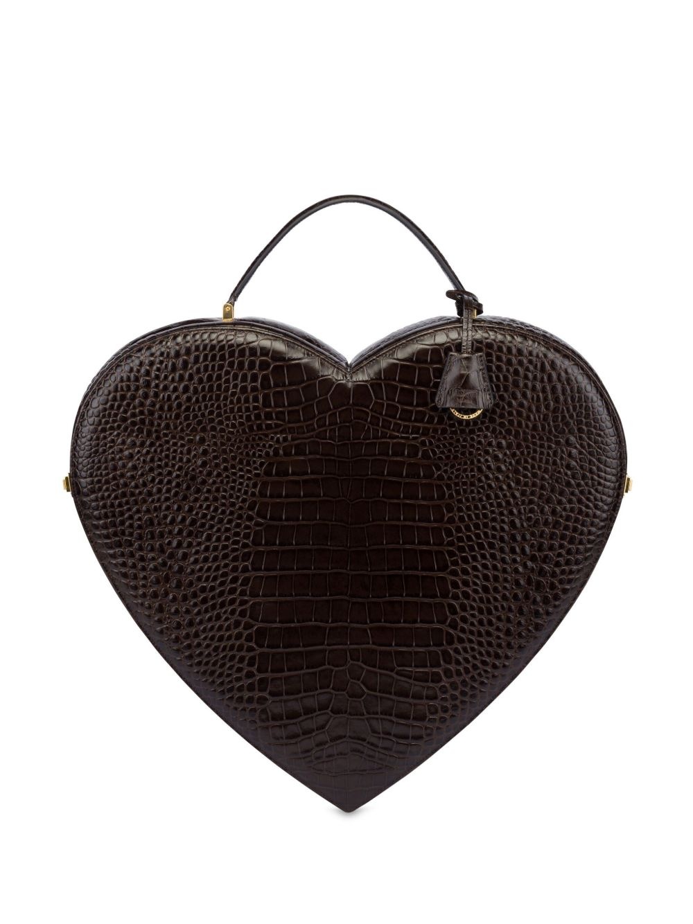 heart-shape leather tote bag Highlights - Brown - Calf leather - Heart shape - Embossed crocodile effect - Clasp fastening - Single top handle - Keyring attachment Made in Italy Composition Outer: Calf Leather 100%