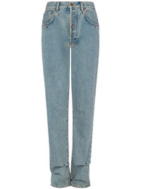 high-waisted straight-leg jeans Highlights - Blue - Cotton - High-waisted - Straight leg - Classic five pockets - Belt loops - Front button and zip fastening - Logo patch to the rear Made in Italy Composition Cotton 100%