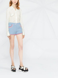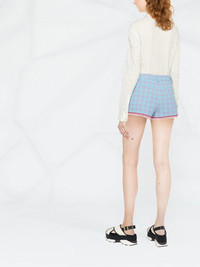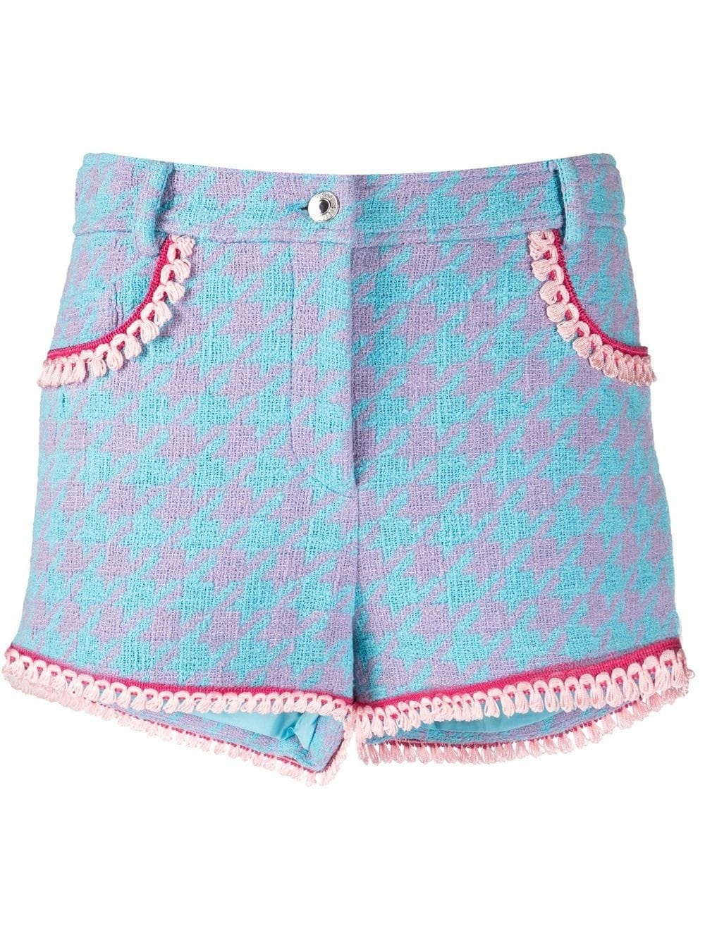 houndstooth-print short shorts blue/pink/white cotton houndstooth pattern high waist belt loops front button and zip fastening fringe detailing three front patch pockets thigh-length Made in Italy Composition Outer: Cotton 81%, Polyamide 10%, Acrylic 9% Lining: Cotton 100% SIZE & FIT Model measurements Height 5 ft 10 in(1.78 m) Bust/Chest 31.49 in(80 cm) Hips 35.43 in(90 cm) Waist 24.4 in(62 cm) FittingInformation This piece fits true to size. We recommend you get your regular size Designed to be fitted at the waist and hips, loose over the leg Made with a mid-weight non-stretch fabric Washing instructions Dry Clean Only