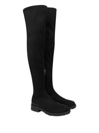 knee-high stretch boots Highlights - Black - Stretch fabric - Zip fastening - Flat sole - Round toe Imported Composition Outer: Polyamide 80%, Elastane 20% Sole: Rubber 100% Lining: Fabric 100%