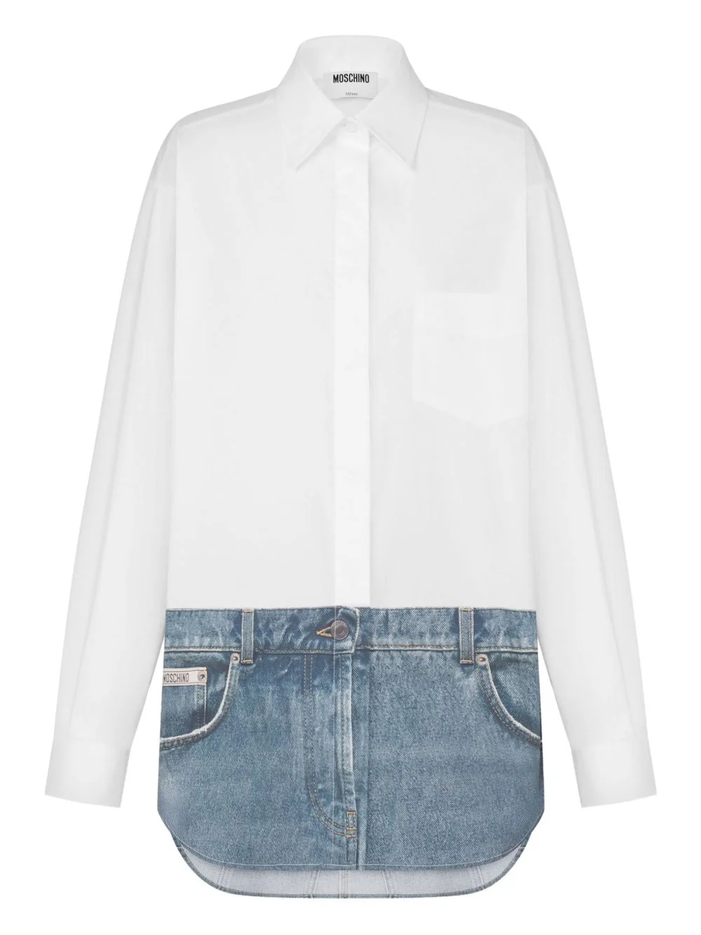 layered-design long-sleeve shirt Highlights - White - Chest pocket - Button fastening - Long sleeves - Layered effect Made in Italy Composition Cotton 94%, Elastane 6% Washing instructions Hand Wash