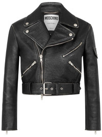 leather biker jacket Highlights - Black - Off-centre front zip fastening - Zip-fastening chest pocket - Two side zip-fastening pockets - Belted waist Made in Italy Composition Leather 100%