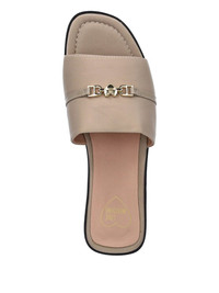 leather slides Highlights - Brown - Round open toe - Engraved logo - Flat sole Imported Composition Outer: Fabric 100%, Calf Leather 100% Lining: Calf Leather 100% Sole: Rubber 100%