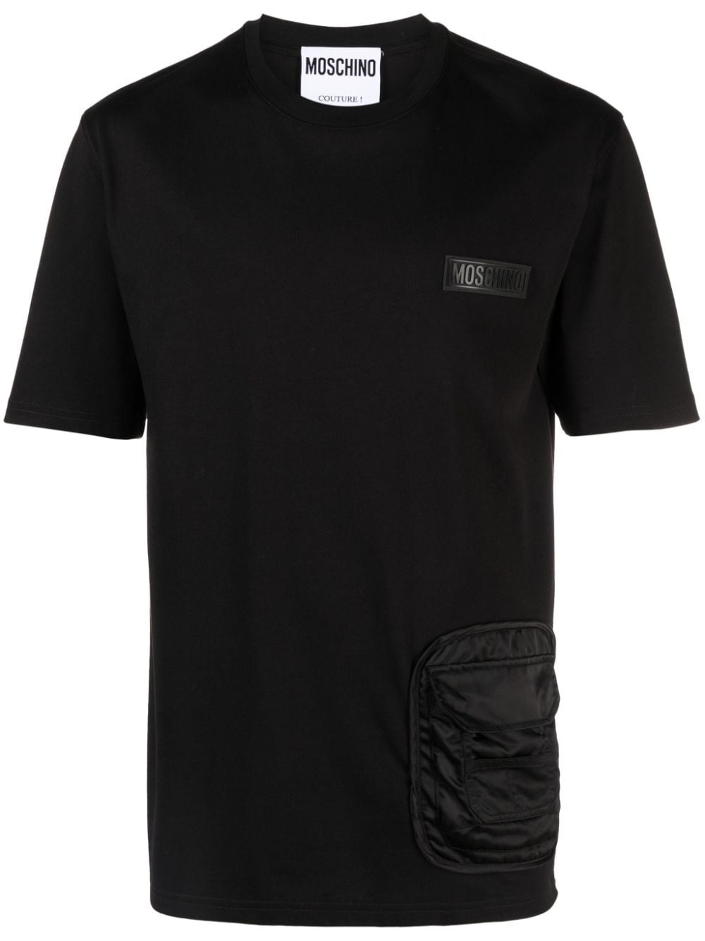 logo-applique cotton T-shirt Moschino elevates the classic black T-shirt with utilitarian elements: note the contrasting patch pocket that adorns one side. The casual design is cut from cotton and adorned with a subtle logo applique at the chest. Highlights - Jet black - Cotton - Ribbed-knit edge - Applique logo - Front flap pocket - Crew neck - Drop shoulder - Short sleeves - Straight hem Made in Italy Composition Cotton 100% SIZE & FIT Model measurements Height 6 ft 2 in(1.89 m) Bust/Chest 37.4 in(95 cm) Hips 35.03 in(89 cm) Waist 27.95 in(71 cm) FittingInformation Designed for a relaxed fit, this piece allows for comfort and movement when worn Made from a midweight non-stretch fabric, this piece offers minimal elasticity when worn This piece fits true to size – take your usual size Washing instructions Hand Wash