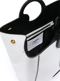 logo-applique tote bag Highlights - White, black - Calf leather - Smooth grain - Rectangle body - Two top handles - Adjustable detachable shoulder strap - Applique logo to front and rear - Gold-tone logo lettering to the front - Main compartment - Internal zip-fastening pocket - Internal patch pocket - Internal logo patch - Full lining - Gold-tone hardware - Open top Made in Italy Composition Outer: Calf Leather 100% SIZE & FIT Measurement DEPTH 5.11 in(13 cm) HANDLE 2.75 in(7 cm) HEIGHT 11.02 in(28 cm) STRAP 18.89 in(48 cm) WIDTH 11.22 in(28.5 cm)