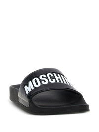 logo-embossed slides Highlights - Black - Embossed logo - Open toe - Flat rubber sole Imported Composition PVC 100%