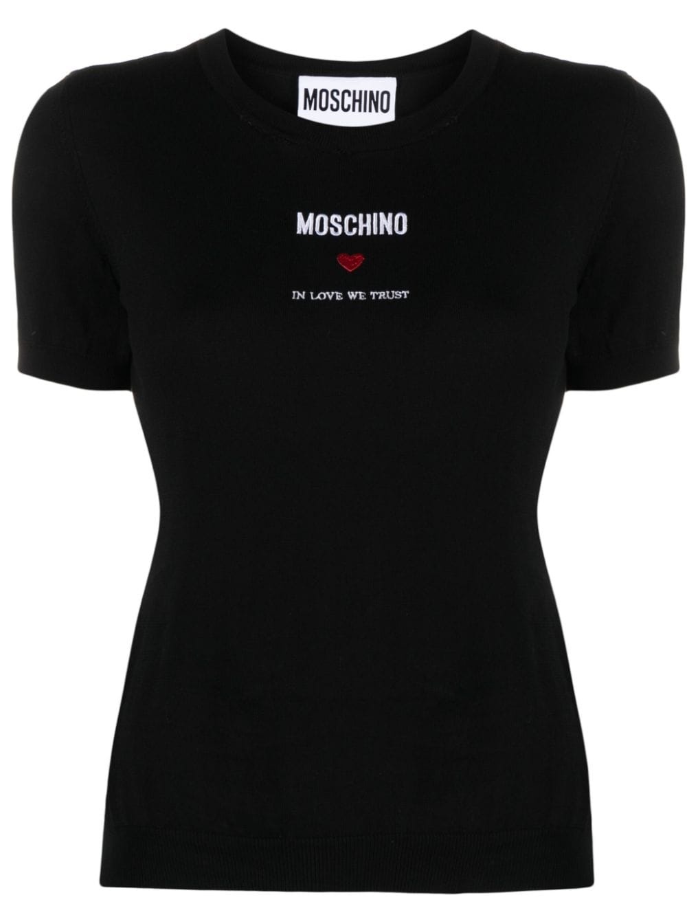 logo-embroidered cotton knitted top Highlights - Black - Cotton - Fine knit - Embroidered logo to the front - Crew neck - Short sleeves - Ribbed elasticated cuffs - Straight elasticated hem Made in Italy Composition Cotton 100% SIZE & FIT Model measurements Height 5 ft 10 in(1.78 m) Bust/Chest 31.49 in(80 cm) Hips 35.03 in(89 cm) Waist 23.62 in(60 cm) FittingInformation Designed for a slim fit that sits just away from the body offering a close yet comfortable fit Made with a midweight knit, this piece offers some stretch This piece fits true to size – take your usual size