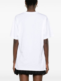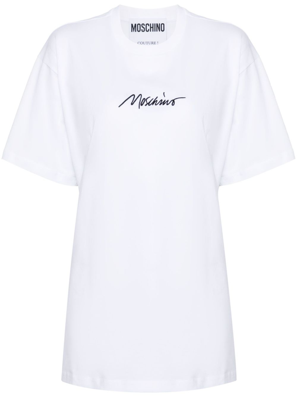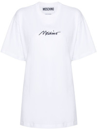 logo-embroidered cotton T-shirt Moschino’s T-shirt is rendered in crisp white and cut from cotton jersey. It’s embroidered with a cursive logo at the front in contrasting black threads. Highlights - White - Cotton - Jersey texture - Embroidered logo to the front - Crew neck - Short sleeves - Straight hem Imported Composition Cotton 100% SIZE & FIT Model measurements Height 5 ft 11 in(1.8 m) Bust/Chest 32.67 in(83 cm) Hips 36.22 in(92 cm) Waist 24.4 in(62 cm) FittingInformation Designed for a relaxed fit, this piece allows for comfort and movement when worn Made from a midweight non-stretch fabric, this piece offers minimal elasticity when worn This piece fits true to size – take your usual size Washing instructions Hand Wash