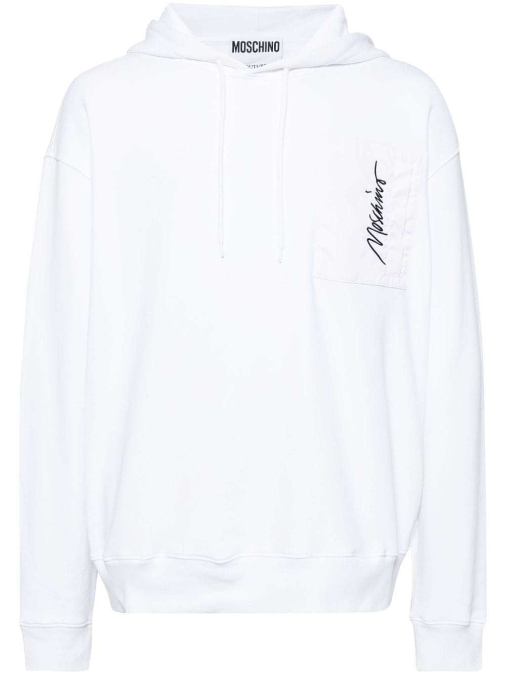 logo embroidered hoodie Highlights - White - Cotton blend - Jersey - Embroidered logo - Contrasting-fabric pocket - Press-stud fastening patch pocket at the chest - Slouchy drawstring hood - Long sleeves - Ribbed cuffs and hem Imported Composition Cotton 90%, Polyamide 9%, Elastane 1% SIZE & FIT Model measurements Height 6 ft 2 in(1.87 m) Bust/Chest 33.07 in(84 cm) Hips 35.43 in(90 cm) Waist 26.77 in(68 cm) FittingInformation Designed for a relaxed fit, this piece allows for comfort and movement when worn The ribbed hem offers a close, comfortable fit Made from a midweight stretch fabric, this piece offers elasticity and flexibility when worn This piece fits true to size – take your usual size Washing instructions Hand Wash