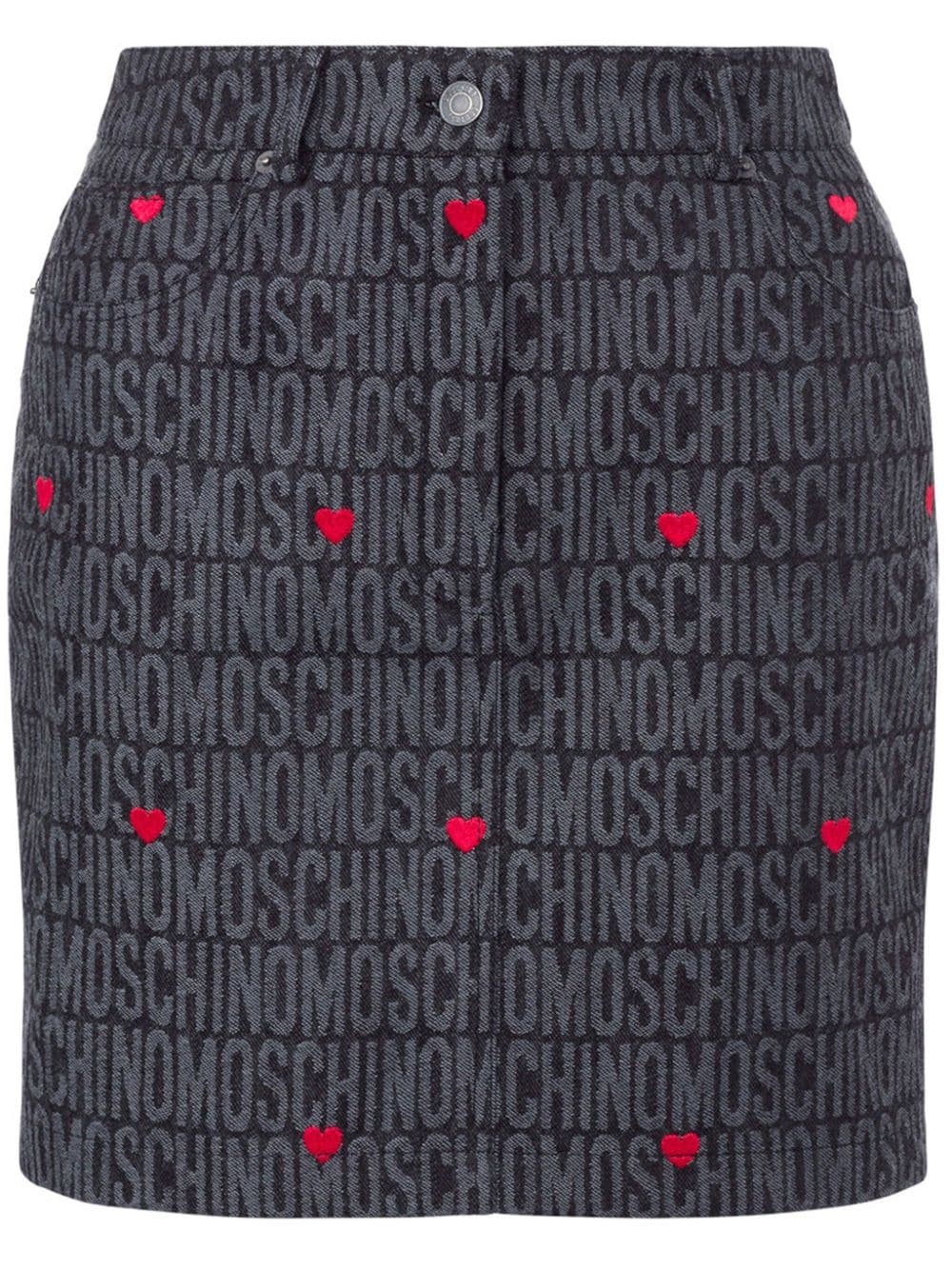 logo-jacquard pencil miniskirt Highlights - Grey/red - Cotton blend - Jacquard logo motif - Belt loops - Concealed fly and button fastening - Two side slit pockets - Two rear patch pockets - Straight hem - Above-knee length Made in Italy Composition Cotton 70%, Polyester 30%