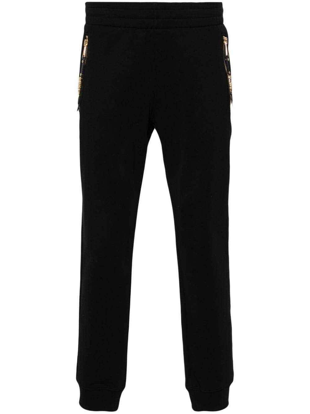 logo-lettering cotton track pants Highlights - Black - Cotton - Jersey texture - Branded zip puller with logo lettering - Gold-tone hardware - Tonal design - Two zip-fastening pockets - Rear patch pocket - Elasticated waistband with internal drawstring - Elasticated ankles Imported Composition Cotton 100% SIZE & FIT Model measurements Height 6 ft 2 in(1.87 m) Bust/Chest 37 in(94 cm) Hips 33.85 in(86 cm) Waist 27.95 in(71 cm) FittingInformation Designed for a relaxed tapered leg, allowing a comfortable loose fit above the knee with a closer fit towards the calves Adjust this piece’s waistband to your preference using the drawstring Made from a midweight non-stretch fabric, this piece offers minimal elasticity when worn This piece fits true to size – take your usual size