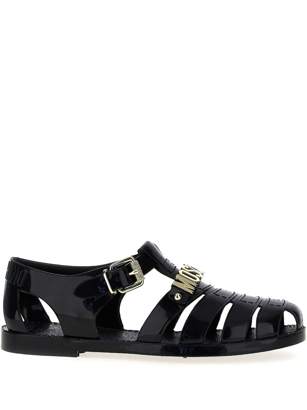 logo-lettering jelly sandals Highlights - Black - Side buckle fastening - Branded insole - Flat rubber sole - Caged design Imported Composition Sole: Rubber 100% Lining: PVC 100% Outer: PVC 100%