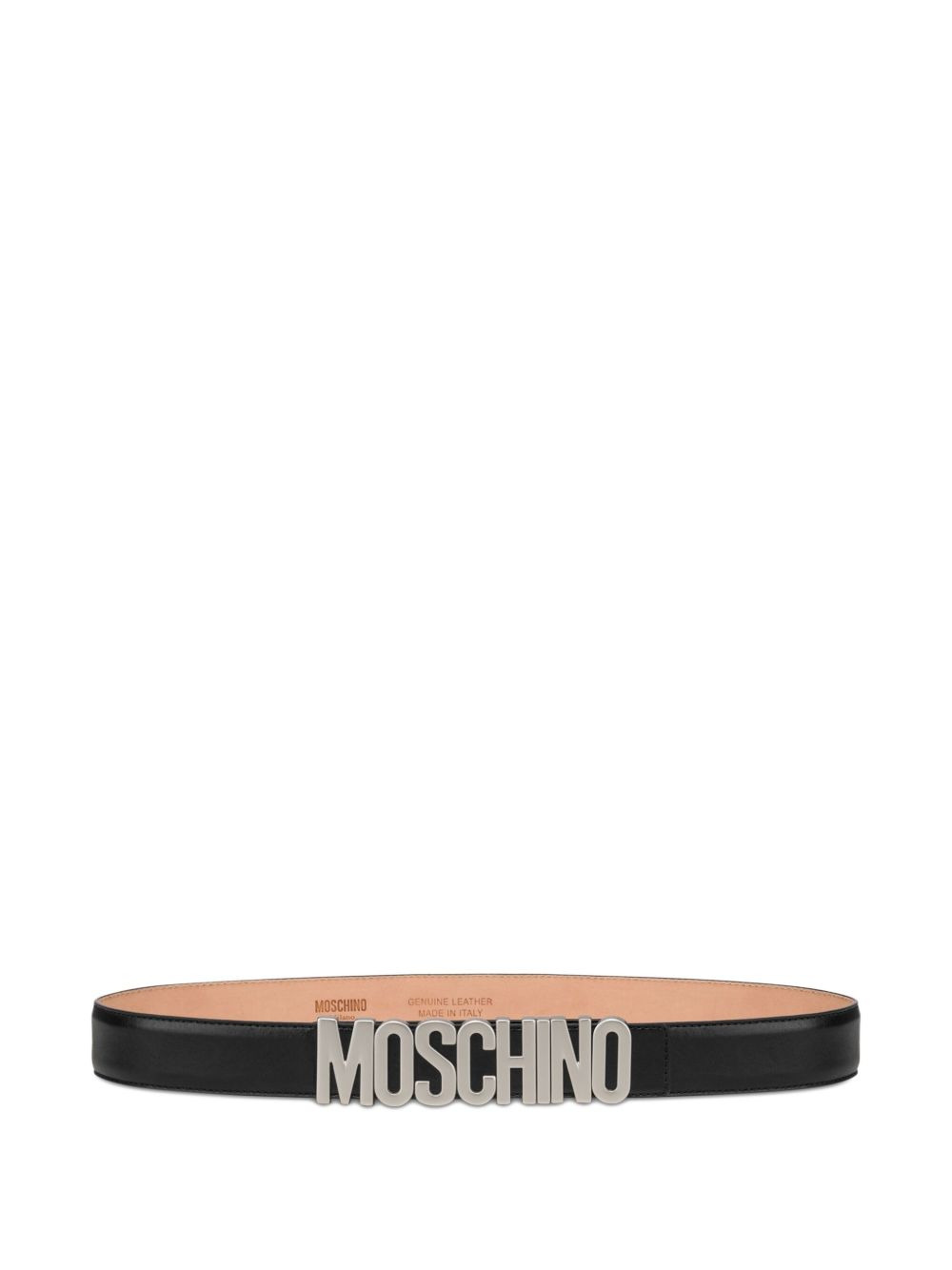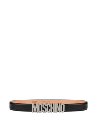 logo-lettering leather belt Highlights - Black - Calf leather - Silver-tone logo plaque - Buckle fastening Made in Italy Composition Calf Leather 100%