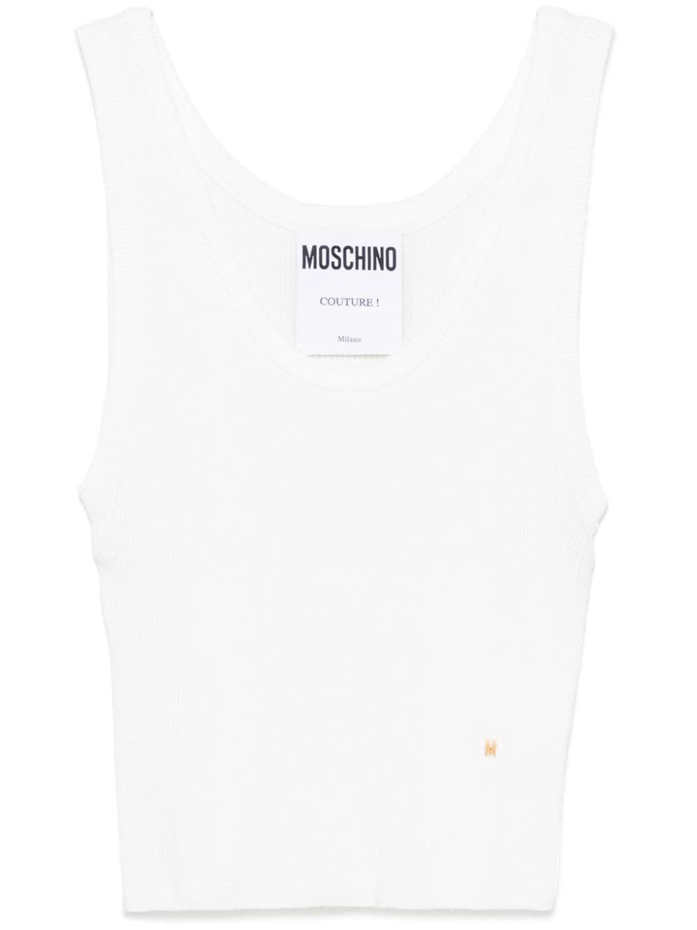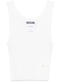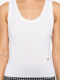 logo-lettering tank top Highlights - White - Virgin wool - Ribbed knit - Logo lettering - Scoop neck - Sleeveless - Straight hem Imported Composition Virgin Wool 100% SIZE & FIT Model measurements Height 5 ft 11 in(1.8 m) Bust/Chest 33.07 in(84 cm) Hips 37.4 in(95 cm) Waist 25.19 in(64 cm) FittingInformation Designed for a slim fit that sits just away from the body offering a close yet comfortable fit Made from a midweight non-stretch fabric, this piece offers minimal elasticity when worn
