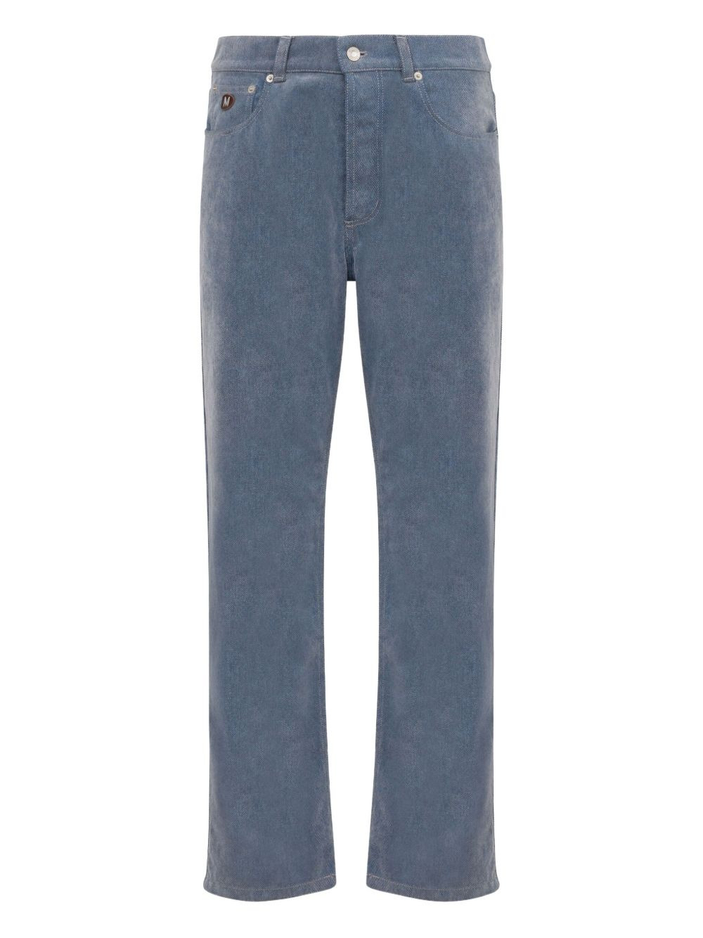 logo-patch jeans Highlights - Washed blue - Five-pocket design - Button and zip fastening - Silver-tone hardware - Tonal stitching Imported Composition Cotton 86%, Viscose 14% Washing instructions Machine Wash