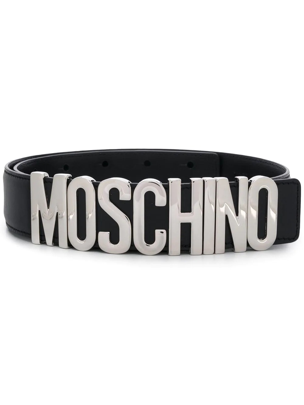logo plaque belt Watch the light bounce off this buckle. Moschino incorporates the iconic logo with a silver-tone plaque as the front buckle. Subtle? I think not. Highlights - Black - Leather - Silver-tone logo plaque - Slide buckle fastening - Punch hole detailing Made in Italy Composition Calf Leather 100% SIZE & FIT Measurement Minimum Length 33.46 in(85 cm) WIDTH 1.37 in(3.5 cm) Maximum Length 38.18 in(97 cm)
