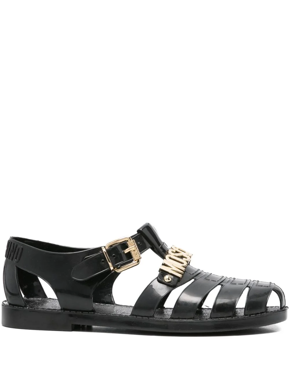 logo-plaque buckle sandals Highlights - Black - Buckle fastening - Logo plaque - Flat sole Imported Composition Sole: Rubber 100% Outer: PVC 100% Lining: PVC 100%