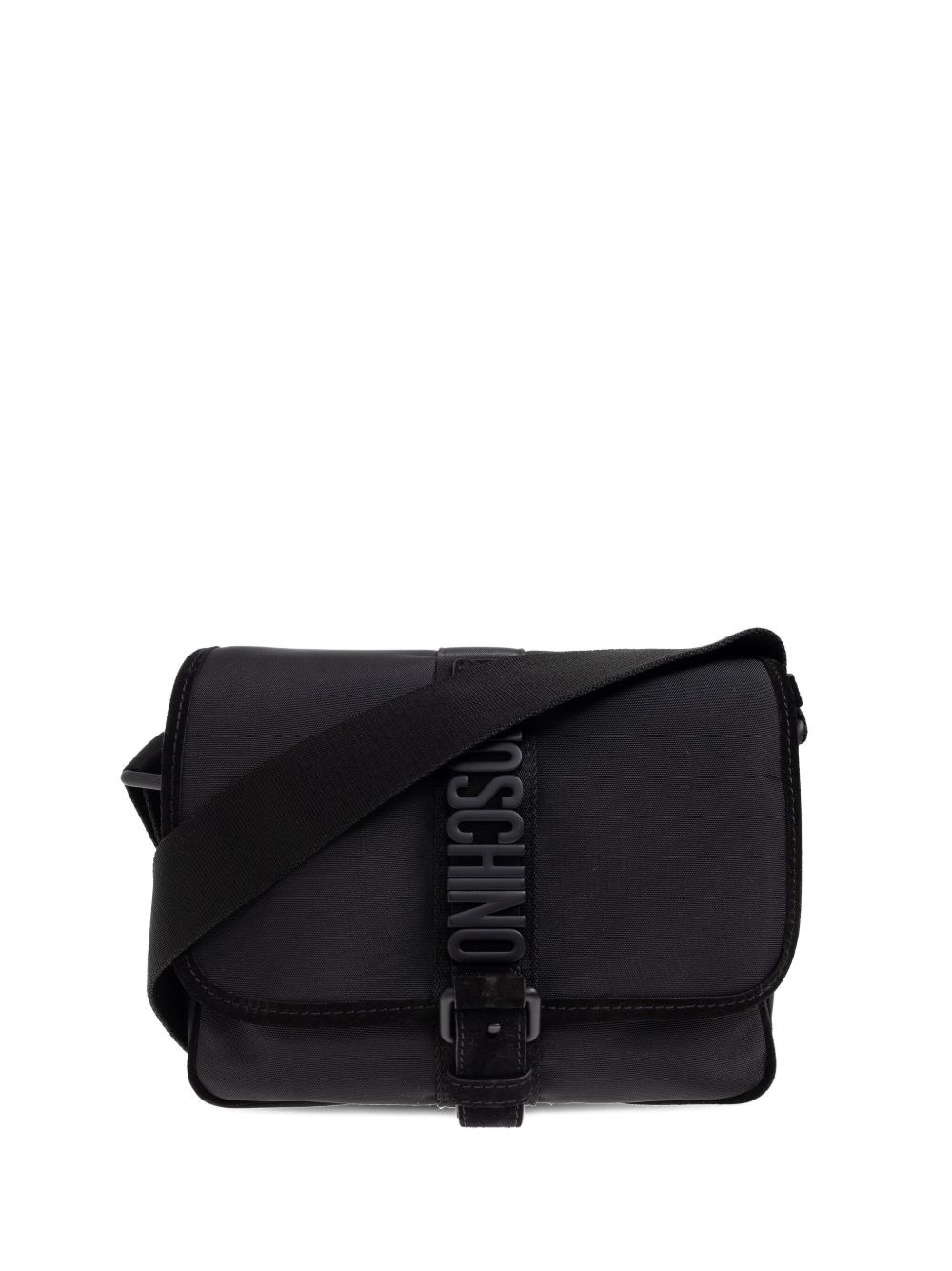 logo-plaque buckled shoulder bag Highlights - Black - Logo lettering strap - Buckle fastening - Zip top closure - External slip pocket - Adjustable strap Imported Composition Outer: Polyester 80%, Calf Suede 20% SIZE & FIT Measurement HEIGHT 14.56 in(37 cm) WIDTH 21.65 in(55 cm)