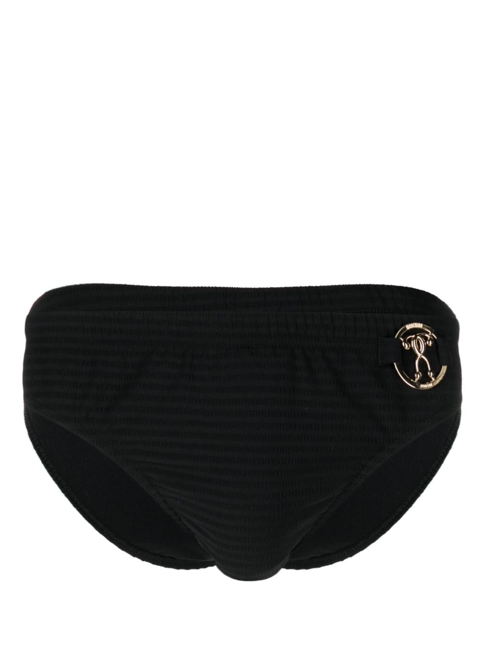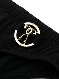 logo-plaque ribbed swim trunks Highlights - Black - Stretch-design - Ribbed detailing - Gold-tone logo plaque - Elasticated waistband with internal drawstring - Thigh-length - Be mindful to try on swimwear over your own garments. Made in Italy Composition Polyester 89%, Elastane 11%