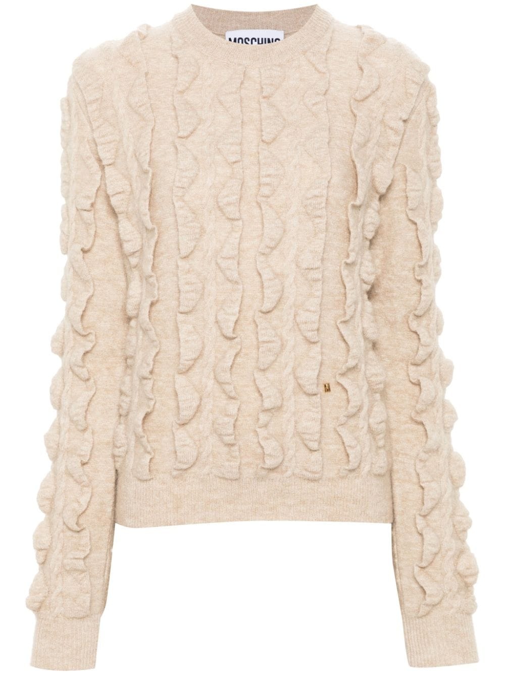 logo-plaque sweater Highlights - Ivory white - Knitted construction - Stretch-design - Chunky cable knit - Crew neck - Long sleeves - Ribbed cuffs and hem - Logo plaque - Straight hem Made in Italy Composition Polyamide 38%, Mohair 31%, Virgin Wool 30%, Spandex/Elastane 1% SIZE & FIT Model measurements Height 5 ft 10 in(1.78 m) Bust/Chest 31.49 in(80 cm) Hips 37 in(94 cm) Waist 23.62 in(60 cm) FittingInformation Designed for a slim fit that sits just away from the body offering a close yet comfortable fit The ribbed hem offers a close, comfortable fit Made with a midweight knit, this piece offers some stretch This piece fits true to size – take your usual size