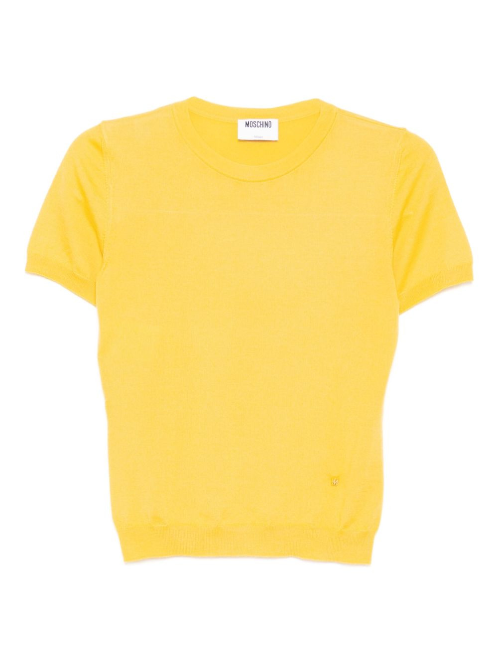 logo-plaque T-shirt Highlights - Mustard yellow - Crew neck - Ribbed cuffs and hem - Short sleeves Made in Italy Composition Lambs Wool 70%, Silk 30% SIZE & FIT Model measurements Height 5 ft 10 in(1.78 m) Bust/Chest 31.88 in(81 cm) Hips 37 in(94 cm) Waist 25.19 in(64 cm) FittingInformation Designed for a relaxed fit, this piece allows for comfort and movement when worn Made with a lightweight knit, this piece offers some stretch Washing instructions Hand Wash