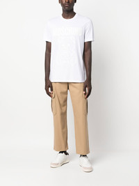 logo-print cotton T-Shirt white cotton logo print at the chest signature Teddy Bear motif round neck short sleeves straight hem Imported Composition Cotton 100% SIZE & FIT Model measurements Height 6 ft 2 in(1.87 m) Bust/Chest 36.41 in(92.5 cm) Hips 37 in(94 cm) Waist 29.52 in(75 cm) FittingInformation This piece fits true to size. We recommend you get your regular size Cut for a relaxed fit Made with a mid-weight fabric