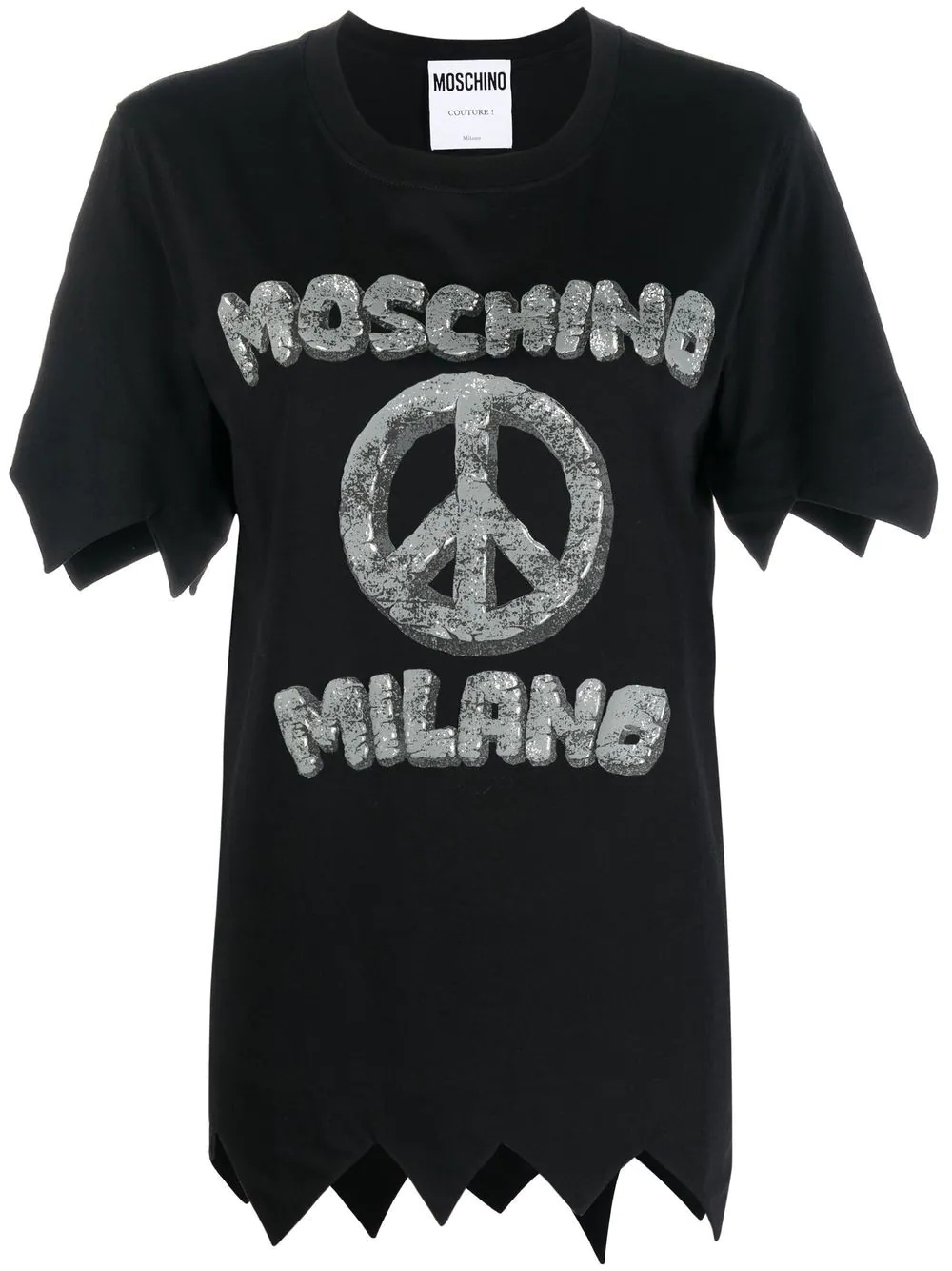 logo-print detail T-shirt Highlights - Jet black - Organic cotton - Zigzag edge - Logo print to the front - Round neck - Short sleeves Made in Italy Composition Organic Cotton 100% SIZE & FIT Model measurements Height 5 ft 10 in(1.78 m) Bust/Chest 32.28 in(82 cm) Hips 35.03 in(89 cm) Waist 23.22 in(59 cm) Washing instructions Hand Wash