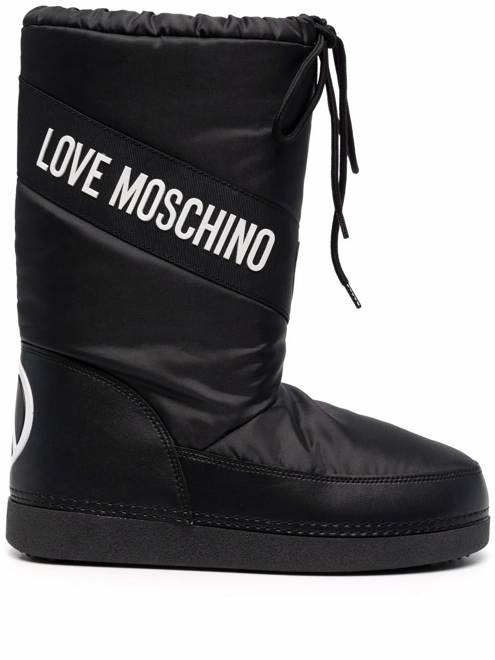 logo-print lace-up boots jet-black logo print to the side front tie fastening round toe flat rubber sole Imported Composition Sole: Rubber 100% Outer: Polyester 100% Lining: Polyester 100% SIZE & FIT Measurement CIRCUMFERENCE 12.2 in(31 cm) HEEL 1.37 in(3.5 cm) HEIGHT 11.02 in(28 cm) Sole height 0.98 in(2.5 cm)