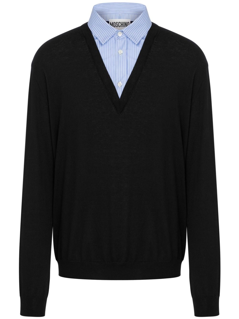 logo-print layered jumper Highlights - Black/light blue/off-white - Cotton-cashmere blend - Layered design - Straight-point shirt collar - Long sleeves - Ribbed cuffs and hem Imported Composition Cotton 85%, Cashmere 15%